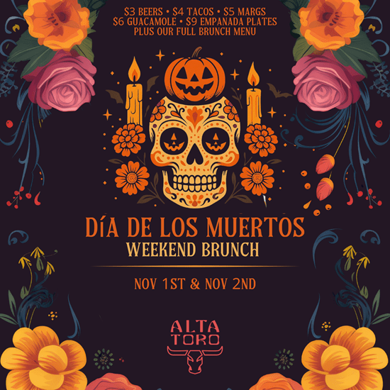 This November, AltaToro invites guests to celebrate Día de los Muertos with a two-day Brunch Fiesta on Saturday, November 1 (11AM–3PM) and Sunday, November 2 (11AM–4PM). The Midtown favorite will honor the spirit of the holiday with vibrant décor, lively energy, and festive brunch specials that capture the flavor and tradition of Mexico’s Day of the Dead.
