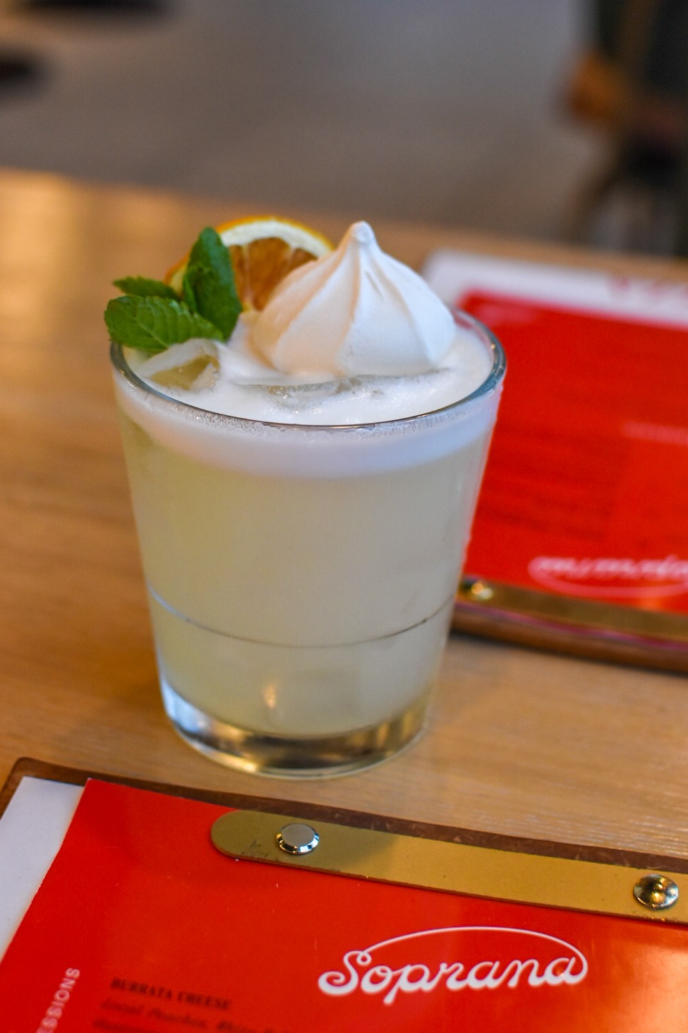 The other appetizers I got were the Meatballs and the oven roasted chicken wings. The meatballs are rich, meaty, herbaceous and fall apart tender local beef and pork. Plus, they jam some ricotta in it for a creaminess! Topped and surrounded by a tasty, tangy herbed tomato sauce, fresh herbs and mozzarella, and finally finished with sharp pecorino. The other appetizer is the large, tender, and juicy chicken wings. Rubbed with the local delicious Spicewalla Italian dry rub then doused in garlic butter and a hint of charred lemon. I paired it with their Luxe Limone, their limoncello cocktail. It is an herbaceous gin, house made limoncello, creamy egg white, sweet vanilla, and you can’t miss the sweet meringue on top!