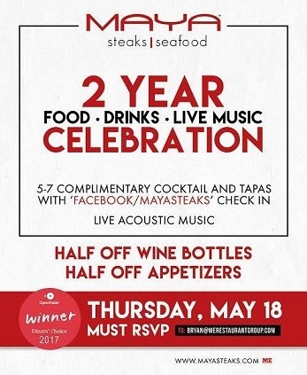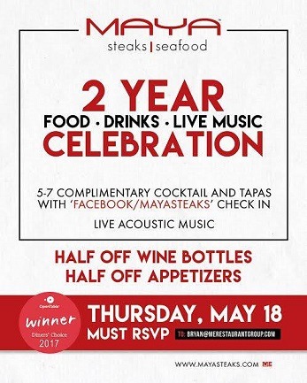 Maya Steaks Two Year Celebration: Thursday, May 18th