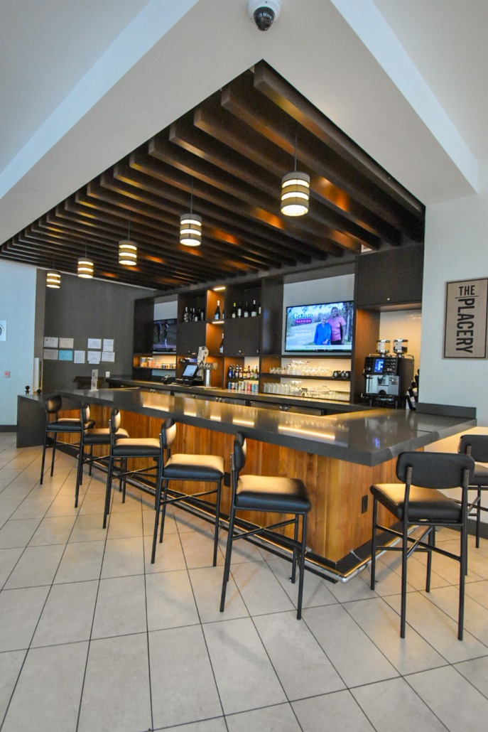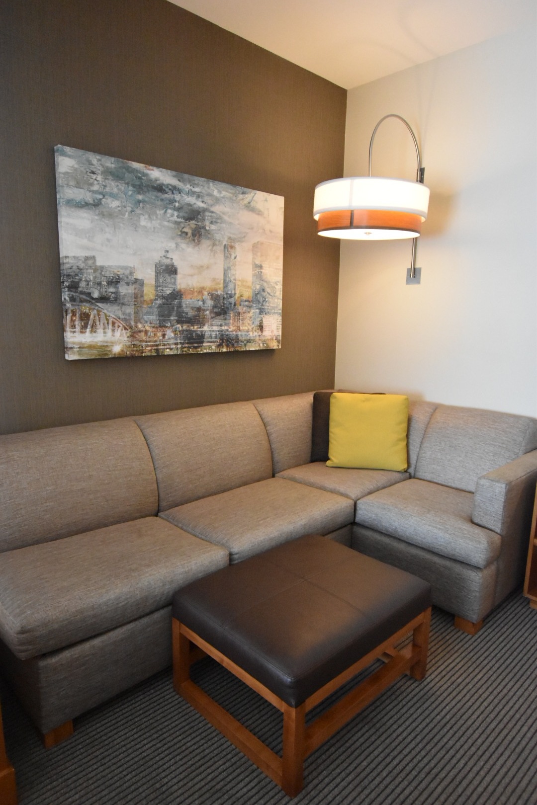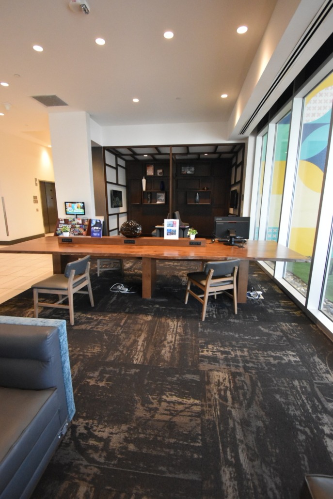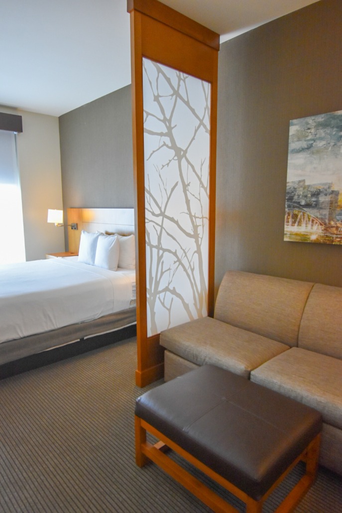 Beyond the restaurant, there are a ton of amenities at The Ette Hotel. They have a spa relaxation room that is open to the hotel to relax. Outside, there is a beautiful pool with luxurious lounging area, courtyard with gorgeous waterfall feature, dotted with tables, and painted duck art sculpture. You can also have breakfast and dinner out there from the restaurant. The breakfast is a buffet with tons of options like waffles, fruit, eggs, pastries, but the star of the breakfast show is the delicious tomato and cheese quiche/frittata. It is worth every penny. If you go out to the right of the property, we found the Ette Hotel has a walking path with water feature and a place to take in the small pond with seating dotted near the front.
