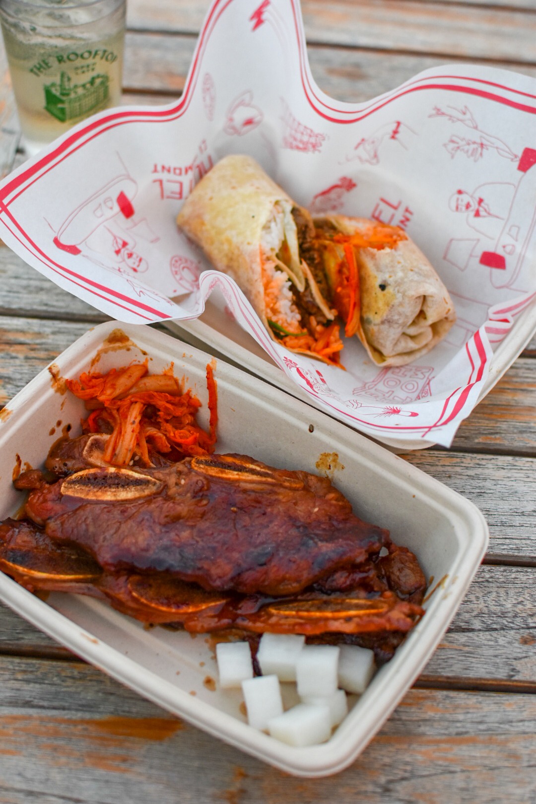 On the rooftop, they have really outdone themselves up there with the cites airstream kitchen, gorgeous lawn like atmosphere, patio seating, and of course stunning sunset views of the Atlanta skyline! The rooftop has its own cocktail menu with some serious sips like my favorite the boozy vodka cocktail, Glinstone key, with floral st Germain and tart bubbles! I also really enjoyed the tequila and spicy ginger Iron Fist cocktail! And now they have Korean BBQ ready to order out of their airstream! We got the sweet and saucy Korean BBQ short rib served with kimchi and my favorite bite the sweet a sassy beef bulgogi burrito with spicy kimchi and rice! Finally, every Friday they have Rooftop DJ from 8-11:45 to dance the night away. Or catch music bingo on Monday or Trivia on Tuesday!
